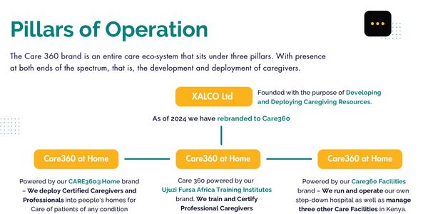 The care 360 brand is an entire Caregiving eco-system that sits under three pillars with the presence of both ends of the spectrum founded with the purpose of developing and deploying Caregiving Resources.
